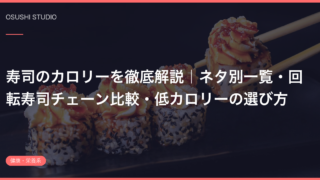 記事 寿司のカロリーを徹底解説|ネタ別一覧・回転寿司チェーン比較・低カロリーの選び方 寿司のカロリーをネタ別に一覧で紹介。マグロ・サーモン・えびなど人気ネタの1貫あたりのカロリーから、回転寿司チェーン別の目安、低カロリーな選び方まで詳しく解説します。 2026.03.02 記事