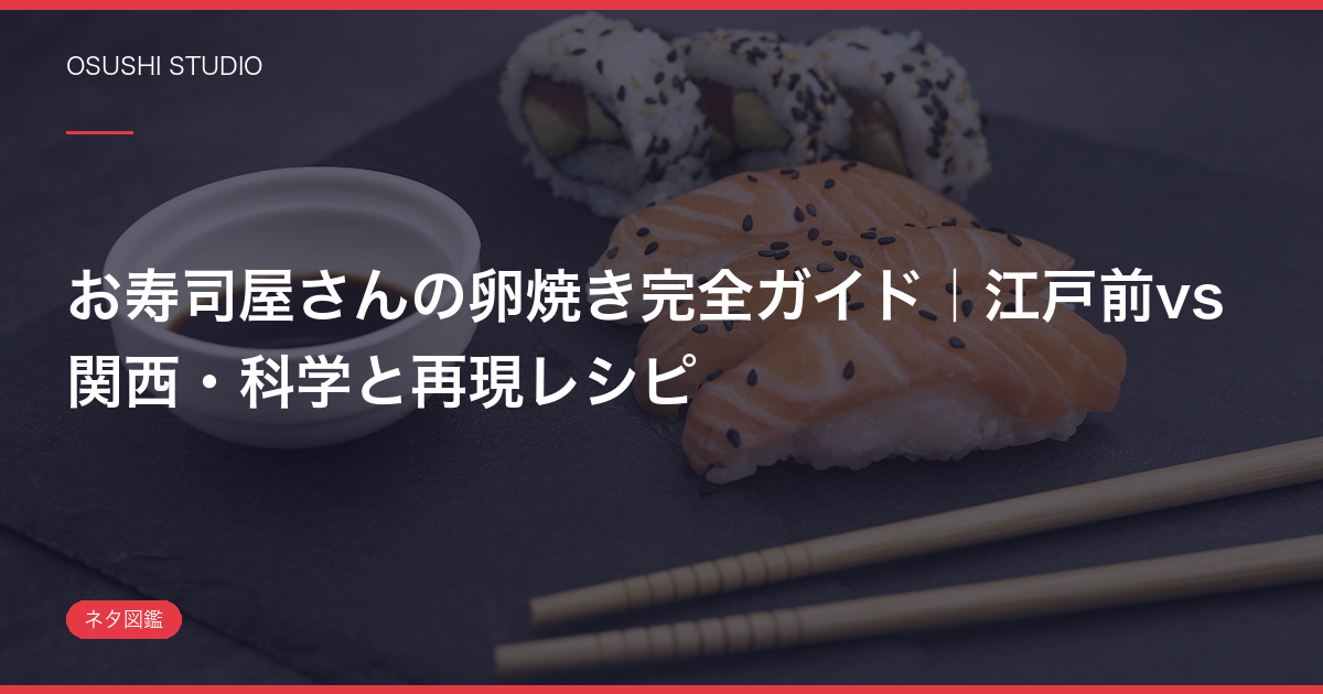 お寿司屋さんのカウンターで光る、あの美しい卵焼き。「ギョク」と呼ばれるこの一貫には、職人の腕と哲学が凝縮されています。甘くてしっとりした江戸前の厚焼き玉子と、だしが効いてふわふわの関西風だし巻き。同じ「卵焼き」でも、地域や職人によって味も食感もまるで異なります。この記事では、寿司屋の卵焼きの歴史から江戸前と関西の違い、焼き上がりを左右する科学的メカニズム、そして家庭で再現するための段階別レシピまで徹底的に解説します。寿司のネタ図鑑の中でも奥が深い一品を、一緒に掘り下げていきましょう。