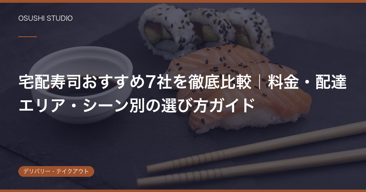 この記事では、宅配寿司おすすめ7社の料金・配達エリア・ネタの品質を徹底比較します。パーティーや法事、年末年始などシーン別の選び方や、出前館・Uber Eatsなどデリバリーアプリ経由と直接注文の違いも解説。さらに、クーポン活用やセット注文など「コスパ最強の注文テクニック」も紹介していますので、ぜひ最後までお読みください。寿司の出前全般について知りたい方は「寿司の出前・宅配おすすめガイド」もあわせてご覧ください。