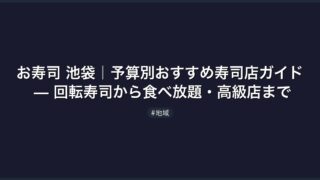 記事 お寿司 池袋|予算別おすすめ寿司店ガイド — 回転寿司から食べ放題・高級店まで 池袋のお寿司を予算別に徹底ガイド。回転寿司・立ち食い・食べ放題・高級店のおすすめを比較。ランチ・ディナーの使い分けも紹介します。 2026.03.17 記事